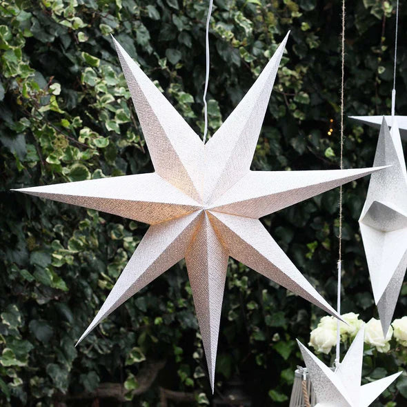 Hand-crafted light up hanging Star. These stars are made from recycled strong paper. They will make a stunning display or decoration in any room in the home, great for the festive season or any party or gathering,and can be used time after time.